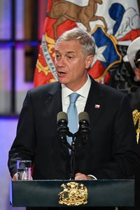 (260417) -- SANTIAGO, 17 abril, 2026 (Xinhua) -- Imagen del 16 de abril de 2026 del presidente chileno, José Antonio Kast, hablando mientras participa en una declaración de prensa conjunta con el presidente de República Checa, Petr Pavel, en el Palacio de La Moneda, en Santiago, capital de Chile. (Xinhua/Jorge Villegas) (jv) (jg) (da) (ce)