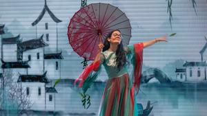 (260417) -- BELGRADO, 17 abril, 2026 (Xinhua) -- Imagen del 16 de abril de 2026 de una participante realizando una presentación durante una competencia de idioma chino con motivo del 17 Día del Idioma Chino de las Naciones Unidas, en Nis, Serbia. (Xinhua/Wang Wei) (oa) (vf)