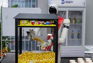 (260418) -- GUANGZHOU, 18 abril, 2026 (Xinhua) -- Imagen del 26 de marzo de 2026 de un robot vendiendo palomitas de maíz en una empresa, en Guangzhou, en la provincia de Guangdong, en el sur de China. En los últimos años la provincia de Guangdong ha adoptado diversas medidas para explorar el desarrollo y la aplicación de la inteligencia artificial (IA) incorporada. Clústeres industriales líderes a nivel nacional están en auge en ciudades como Shenzhen y Guangzhou, en la provincia. Actualmente, Guangdong está acelerando las innovaciones en IA y robótica en sectores que incluyen el cuidado de la salud, la educación, la gestión urbana y las industrias especializadas. (Xinhua/Liu Mengqi) (oa) (da)