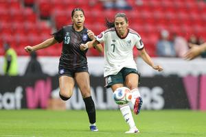 (260419) -- TOLUCA, 19 abril, 2026 (Xinhua) -- Imagen del 18 de abril de 2026 de María Sánchez (d), de México, controlando el balón durante el partido de clasificación para el Campeonato CONCACAF W 2026 ante Puerto Rico, celebrado en el Estadio Nemesio Diez, en Toluca, México. (Xinhua/Francisco Cañedo) (fc) (oa) (ah)