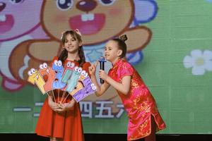 (260418) -- VLADIVOSTOK, 18 abril, 2026 (Xinhua) -- Imagen del 17 de abril de 2026 de concursantes compitiendo durante una ronda preliminar del sexto concurso de dominio del idioma chino "Puente Chino" para estudiantes de primaria extranjeros, en Vladivostok, Rusia. (Xinhua/Andrey Matveenko) (jg) (da)