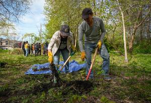 (260420) -- VANCOUVER, 20 abril, 2026 (Xinhua) -- Imagen del 19 de abril de 2026 de voluntarios retirando plantas invasoras durante un evento con motivo del próximo Día de la Tierra, en Vancouver, Columbia Británica, Canadá. (Xinhua/Liang Sen) (oa) (ah) (vf)