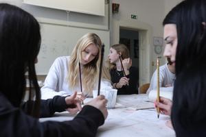 (260421) -- CELJE, 21 abril, 2026 (Xinhua) -- Imagen del 20 de abril de 2026 de estudiantes participando en un taller de caligrafía china durante un evento en el marco del Día Internacional de la Lengua China en una preparatoria, en Celje, Eslovenia. (Xinhua/Zeljko Stevanic) (oa) (ah) (ce)