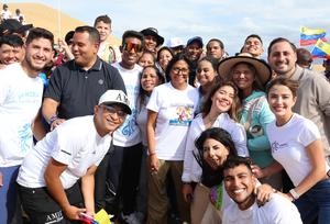 (260421) -- FALCON, 21 abril, 2026 (Xinhua) -- Imagen proveída por la Presidencia de Venezuela de la presidenta encargada venezolana, Delcy Rodríguez (c), posando para una fotografía grupal mientras encabeza la "Gran Peregrinación Nacional por una Venezuela sin Sanciones y en Paz", en los Médanos de Coro, en el estado Falcón, Venezuela, el 21 de abril de 2026. (Xinhua/Presidencia de Venezuela) (ms) (jg) (ra) (ce)