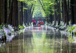 (260425) -- BEIJING, 25 abril, 2026 (Xinhua) -- Imagen del 23 de abril de 2026 de turistas tomando un bote en un parque, en la ciudad de Xinghua, en la provincia de Jiangsu, en el este de China. (Xinhua/Yang Yugang) (jg) (ra)