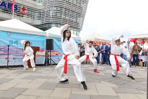 (260425) -- SAN SALVADOR, 25 abril, 2026 (Xinhua) -- Imagen del 24 de abril de 2026 de estudiantes universitarios realizando una presentación de taichí durante una jornada para celebrar el Día Internacional del Idioma Chino organizada por el Instituto Confucio de la Universidad de El Salvador, en el Centro Histórico de San Salvador, capital de El Salvador. Con música, danza y diversas expresiones artísticas, El Salvador celebró el viernes el Día Internacional del Idioma Chino, en una jornada que mostró la riqueza de esta lengua, la diversidad de la cultura china, así como los lazos de amistad entre ambas naciones. (Xinhua/Alexander Peña) (ap) (ra) (da)
