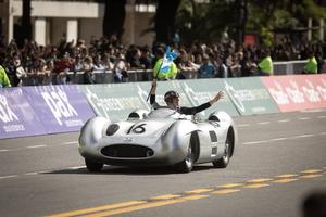 (260426) -- BUENOS AIRES, 26 abril, 2026 (Xinhua) -- El piloto argentino de Fórmula 1, Franco Colapinto, saluda desde una réplica del Mercedes-Benz W196 conocido como la "Flecha de Plata", sobre la avenida Del Libertador durante una exhibición, en la ciudad de Buenos Aires, capital de Argentina, el 26 de abril de 2026. La multitud vibró el domingo en Buenos Aires, capital de Argentina, con la exhibición del piloto argentino de Fórmula 1, Franco Colapinto, en un evento que reunió a medio millón de personas y convirtió las calles de la ciudad en un escenario de velocidad, historia y fervor por el automovilismo. (Xinhua/Martín Zabala) (mz) (da) (ah) (ce)