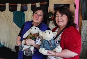 (260426) -- SANTIAGO, 26 abril, 2026 (Xinhua) -- Imagen del 25 de abril de 2026 de personas posando con peluches de lana en un festival de lana, en Santiago, Chile. (Xinhua/Zhou Jiayi) (da) (ah) (ce)