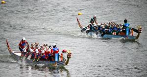 (260426) -- SANYA, 26 abril, 2026 (Xinhua) -- El equipo de China (i) y de Macao de China compiten durante la gran final de la carrera de 400 metros en línea recta femeninos para botes pequeños del evento de botes del dragón en los VI Juegos Asiáticos de Playa, en Sanya, en la provincia de Hainan, en el sur de China, el 26 de abril de 2026. (Xinhua/Yang Guanyu) (da) (ah) (ce)