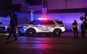 (260426) -- WASHINGTON, 26 abril, 2026 (Xinhua) -- Imagen del 25 de abril de 2026 de un vehículo de la policía visto cerca del Hotel Washington Hilton donde se llevó a cabo la cena de corresponsales de la Casa Blanca, en Washington D.C., Estados Unidos. En una conferencia de prensa en la Casa Blanca el sábado por la noche, Trump dijo que el presunto tirador reside en el estado de California y que agentes de la ley acudieron a su apartamento. (Xinhua/Li Rui) (ah) (da) (ce)