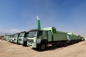 (260429) -- ADIS ABEBA, 29 abril, 2026 (Xinhua) -- Imagen del 29 de abril de 2026 de camiones eléctricos de gran tonelaje en la obra del Aeropuerto Internacional de Bishoftu, cerca de la ciudad de Bishoftu, en el estado regional de Oromia, Etiopía. China Communications Construction Company (CCCC) presentó el miércoles 50 camiones eléctricos de gran tonelaje en la obra del megaproyecto aeroportuario de Etiopía, promoviendo la movilidad sostenible y el desarrollo de los sectores logístico y de la construcción del país. (Xinhua/Geng Xinning) (da) (vf)